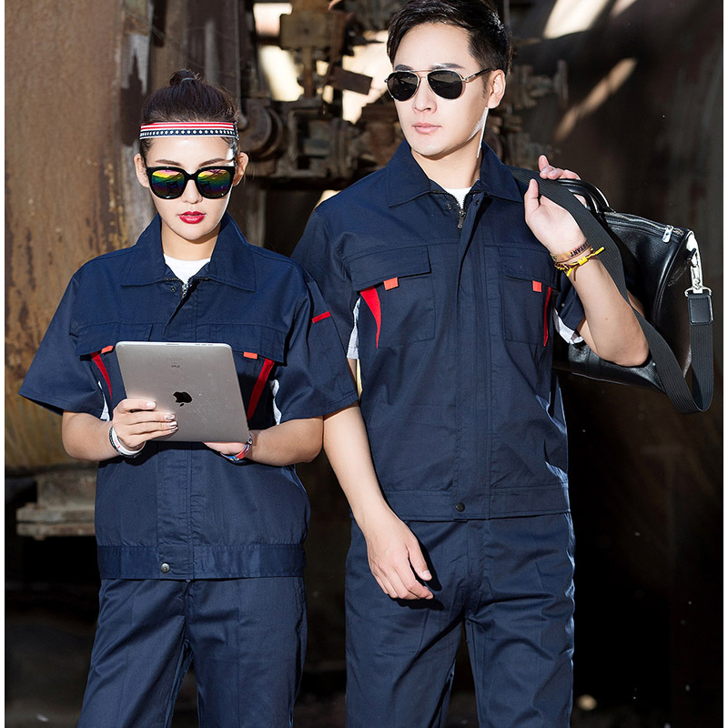 YDS1302工衣訂做衣短袖工作服套裝工裝廣州生產(chǎn)廠家工作服短袖套裝定制廠家工服夏季薄款工廠車間透氣勞保服